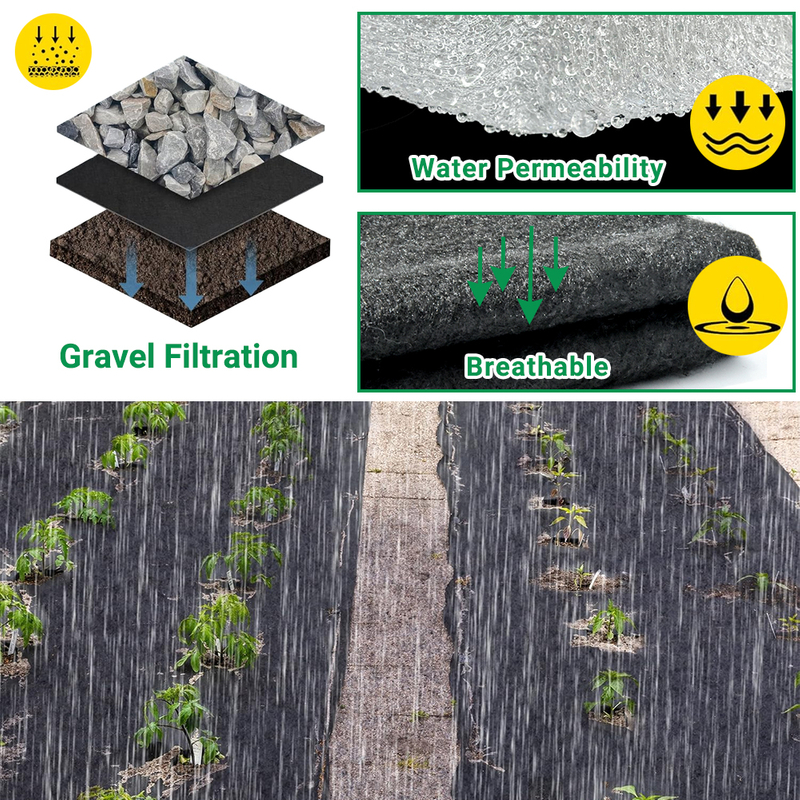 מבד שאינו ארוג בד שאינו ארוג מונע צמיחת עשבים ללא צורך בכימיקלים. ביישומי גינון ויישומי גינה, מונע גדילה של עשבים שוטים תוך מתן אפשרות לעבור מים, חמצן וחומרים מזינים. מונח על גבי האדמה, מתחת לשכבה דקורטיבית כמו שבבי קליפות, שבבי אבן, חלוקי נחל או חצץ. הגיאוטקסטיל אפור בצבע, קל לחתוך, אינו מקורב, פשוט וגמיש למצב על קרקע לא אחידה וניתן לאבטח אותו באמצעות יתדות הפלסטיק שלנו.
