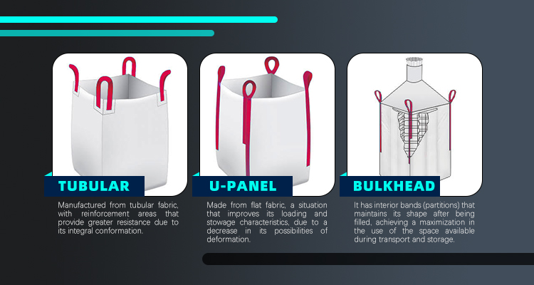 בנויים מסרטי פוליפרופילן ארוגים בעלי עקשנות ועמידות גבוהים, שנועדו להחזיק עומסים מ-300 עד 2500 ק'ג, הם מוצגים במגוון הדגמים המגוון ביותר: Tubular, Flat, U-Panel, עם מחיצות, One Loop, בין היתר.כל אחד מהעיצובים הללו מאפשר שילובים חלופיים, בהתחשב בדרישות הלקוח מבחינת כושר העמסה, סוג ההעמסה והפריקה, מערכות הרמה וכו'.